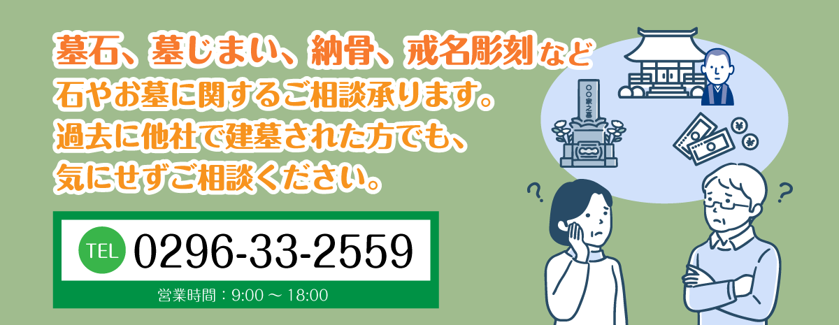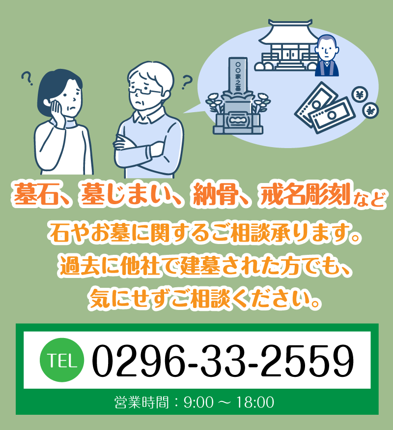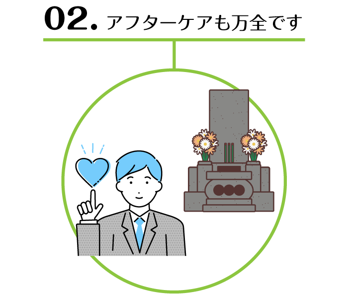 例えば、お墓を建てたあとでも、お気軽にご相談をしていただいてOKです。そのようなことも、またそれ以外でも柔軟に対応させていただきます。